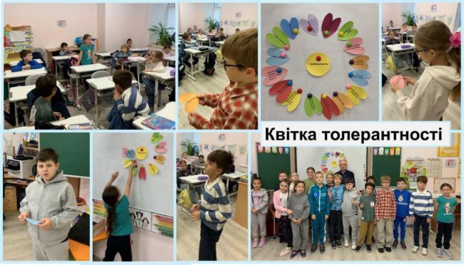 Третьокласники створювали квітку толерантності, на пелюстках якої розташовані слова, які описують риси толерантної людини. Обговорювали, що таке толерантність, як її можна виявляти у стосунках з іншими людьми.