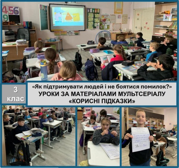 Третьокласники переглянули серію мультфільму "Корисні підказки" і поговорили про те, як важливо підтримувати друзів, приймати різність і не боятися помилятися.
